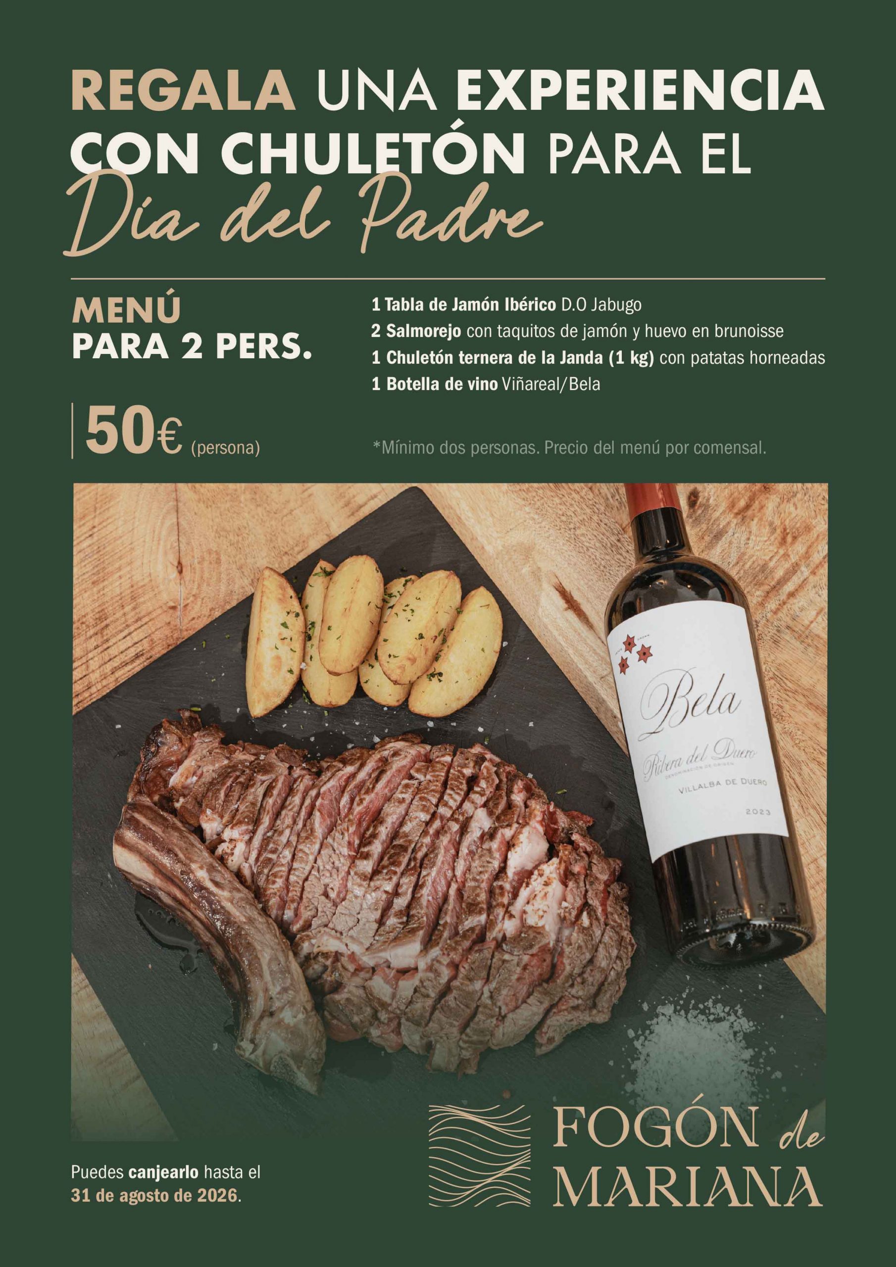 REGALA UNA EXPERIENCIA CHULETÓN PARA EL DIA DEL PADRE: 50 € POR PERSONA